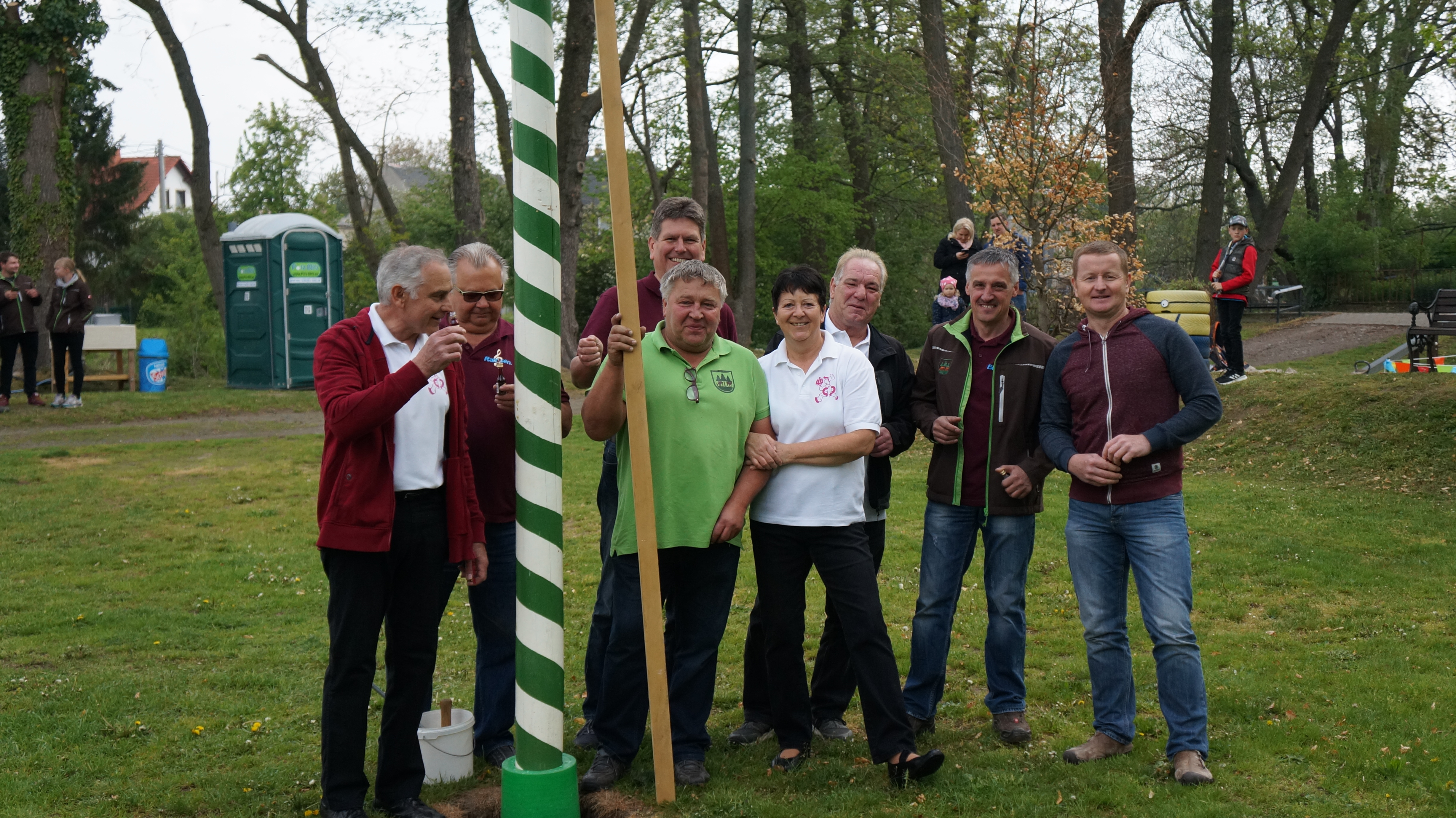 Trotz wohlverdientem Ruhestand hatte es sich Familie Schaaf nicht nehmen lassen, auch in diesem Jahr wieder zum inzwischen traditionellen Maibaumstellen einzuladen. Bei Sonnenschein und einem liebevoll geschmückten Dorfplatz konnte es 10:00 Uhr losgehen. Die ersten Maibowlen und frisches Bier vom Fass gingen über den Tresen des Getränkewagens. Und auch Kaffee und Kuchen waren im Angebot. Natürlich wurde auch durch Firma Schicketanz für das leibliche Wohl mit Schwein am Spieß, Bratwurst und Steak gesorgt. Für die musikalische Umrahmung hatte wieder Friedhold Schuster gesorgt. Nach der Begrüßungsrede durch Gunter Schaaf war es endlich soweit. Vereint durch Mitglieder des Alttechnik Vereins und dem Männerchor Fremdiswalde wurde der wunderschöne Maibaum mit der geschmückten Krone, die wieder Frau Seidel von der Kranzbinderei gefertigt hatte, zum Dorfplatz getragen und aufgestellt. Zum Dank gab es einen kräftigen Applaus von den inzwischen zahlreichen Gästen. Die Linedancer aus Nerchau konnten wieder ein umfangreiches Programm zum Besten geben. Auch hier wurde nicht mit Applaus und Rufen nach Zugabe gespart. Als besonderes Highlight wurde nun auf unserem „Spielplatz“ das erste von insgesamt zwei geplanten Spielgeräten durch unsere Vereinsvorsitzende Jana Mundus eingeweiht.